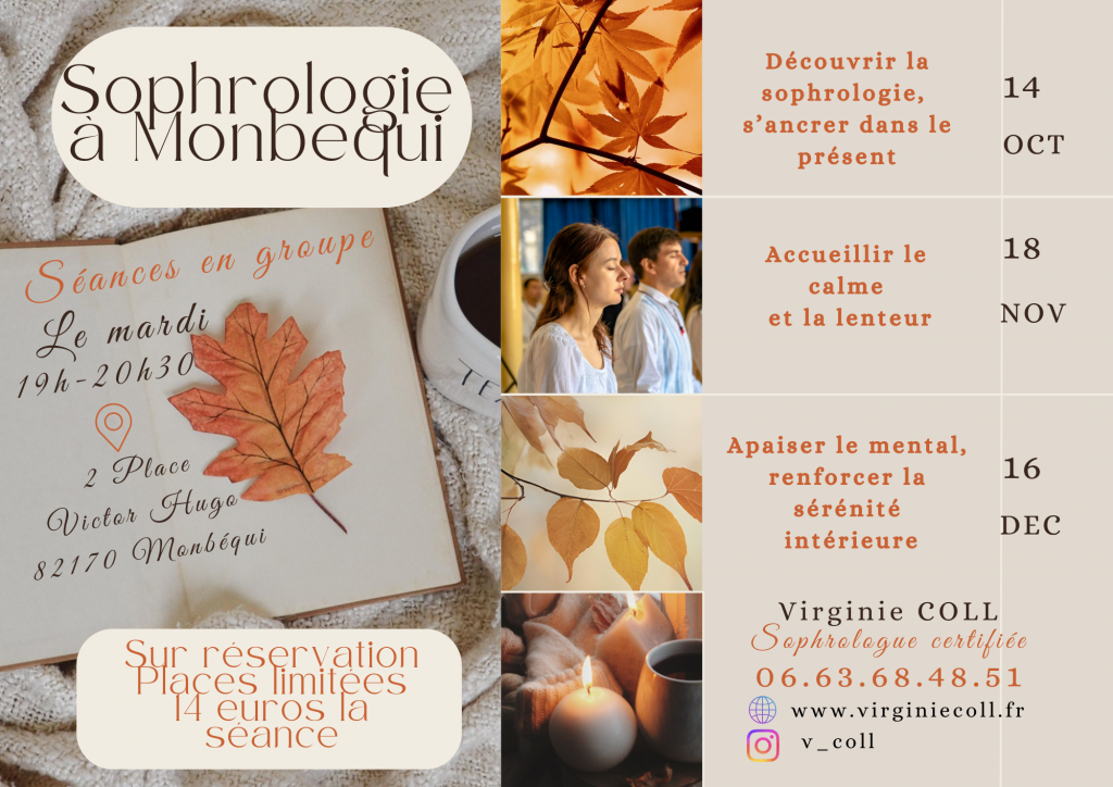 Prendre le temps de se connecter régulièrement à soi, à ses ressentis corporels, à ses émotions, se projeter de manière positive,… La sophrologie propose de cheminer vers une meilleure connaissance et estime de soi, de prendre de la distance par rapport aux croyances limitantes pour accueillir avec plus de justesse son potentiel et ses valeurs. En faveur du développement de la confiance en soi, sa pratique représente un moyen doux et bienveillant de se préparer à l’action et vivre les événements plus sereinement.